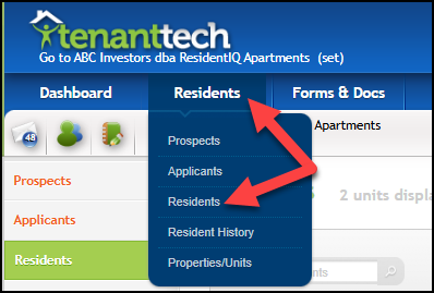 1. Go to Residents, and select the a unit. The selected unit be highlighted yellow.