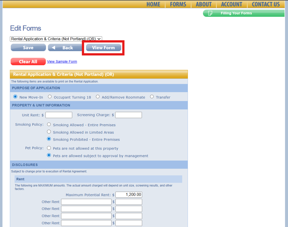 4. Once you have completed the edit of the active electronic forms, and are ready to view the Final PDF click View Form