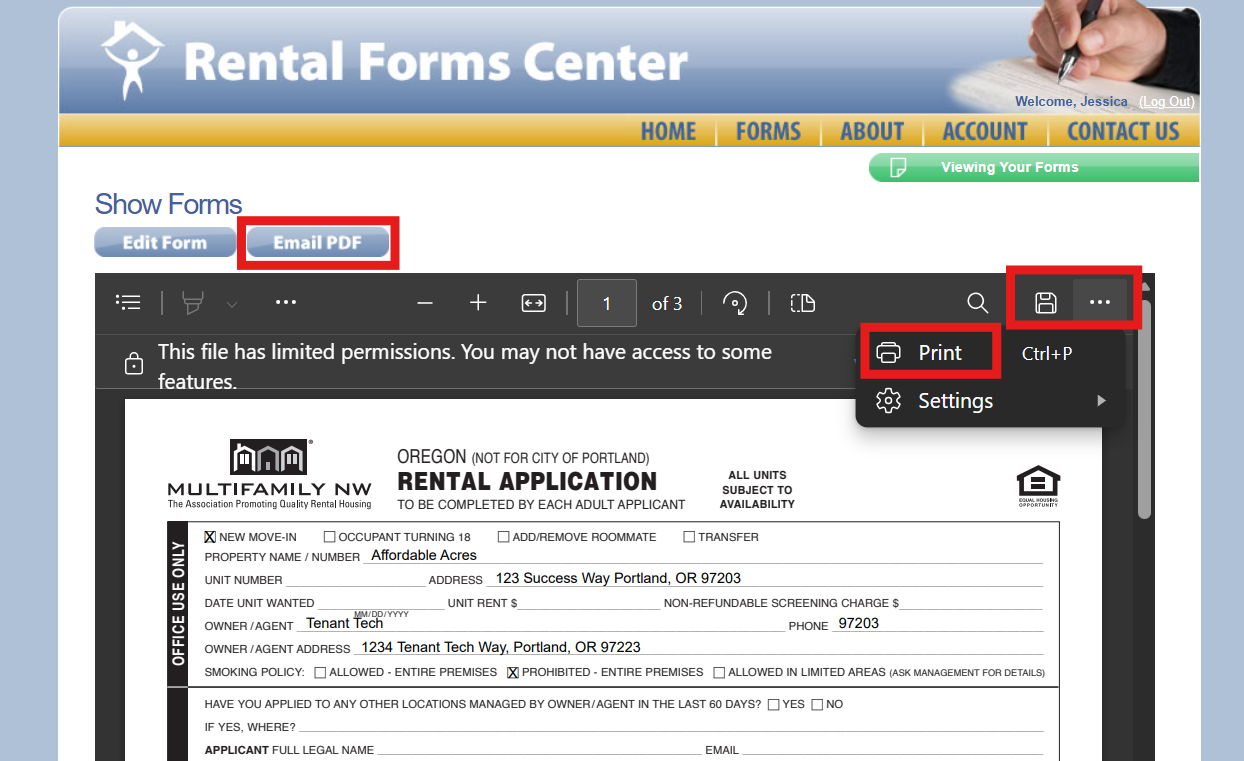 Important: If you are making multiple edits on the same form for different residents or units- you will need to Save/Print/Email each edit you complete.