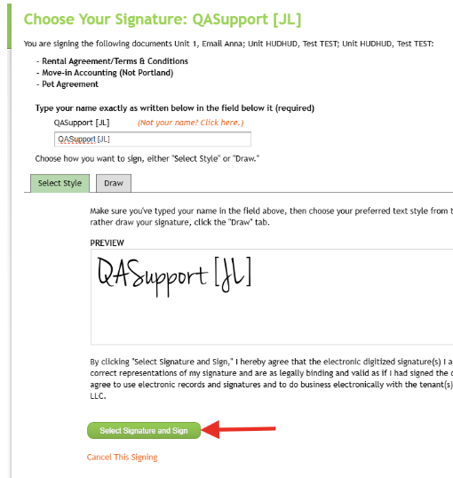 Note: Once documents are fully signed by the Resident, and Owner/Agent the Resident will receive an emailed copy of the forms automatically.