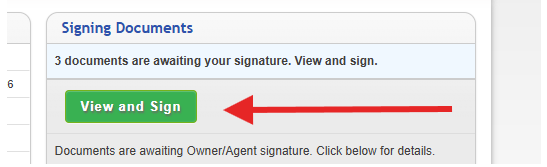 On the TenantTech Dashboard, Users will see a View and Sign when documents are assigned to you for Owner/Agent signature, and the residents completed signing.